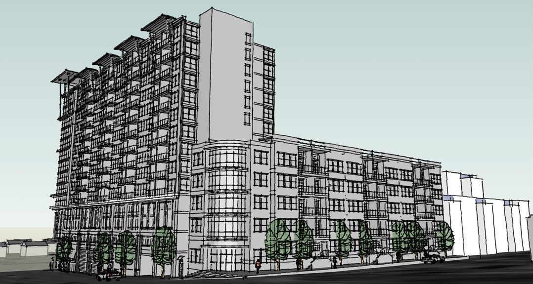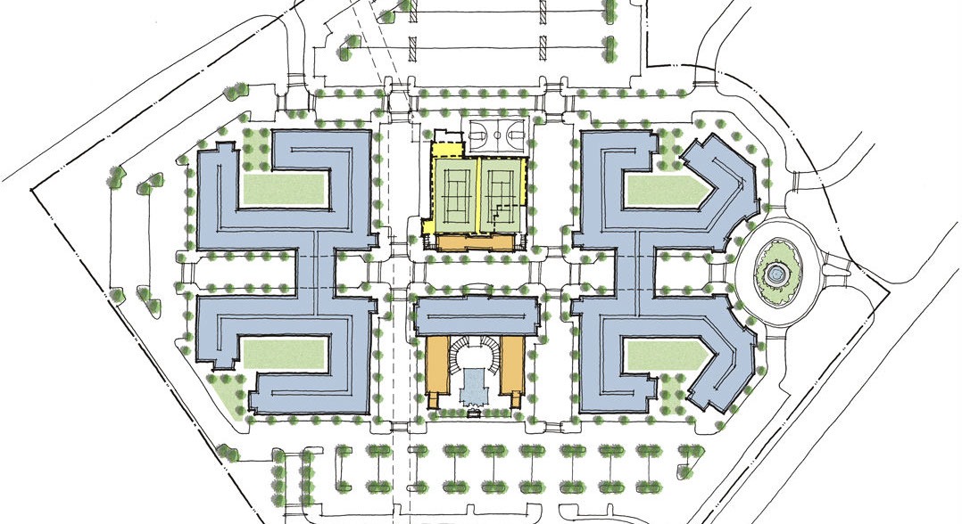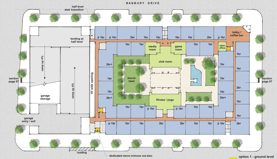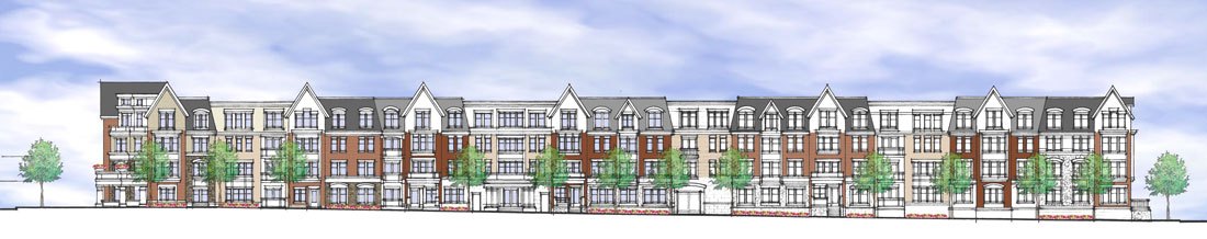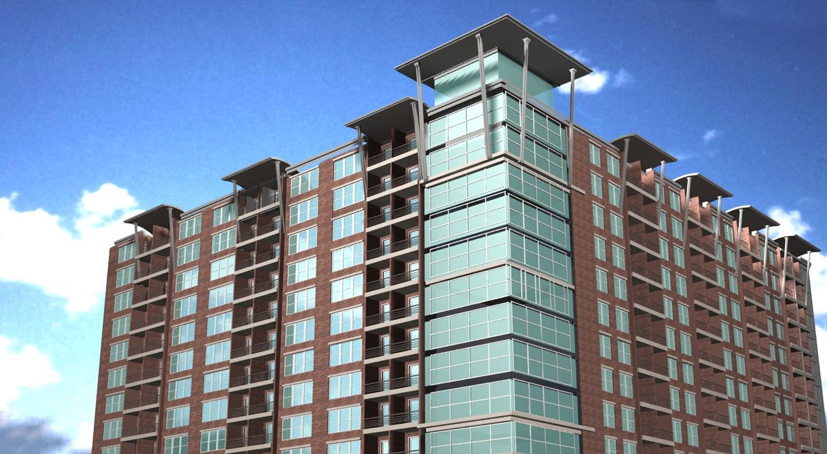 Designed as a mixed-use 220 unit apartment building in proximity to the Washington D.C. Metro, the Huntington Avenue project promotes urban style growth in a satellite metropolitan hub. Ten stories of one and two bedroom market-rate luxury apartments sit atop an embedded parking garage and 7,000 sq ft of ground floor retail. To best integrate the project into the surrounding context, stacked “two over two” condominiums occupy the back edge of the site, creating a transition into the neighborhood of single family detached style homes. The overall development exemplifies transit oriented design sitting adjacent to the existing Huntington Metro Station.