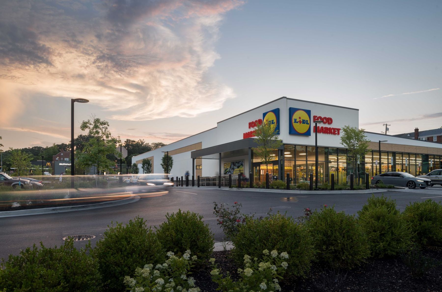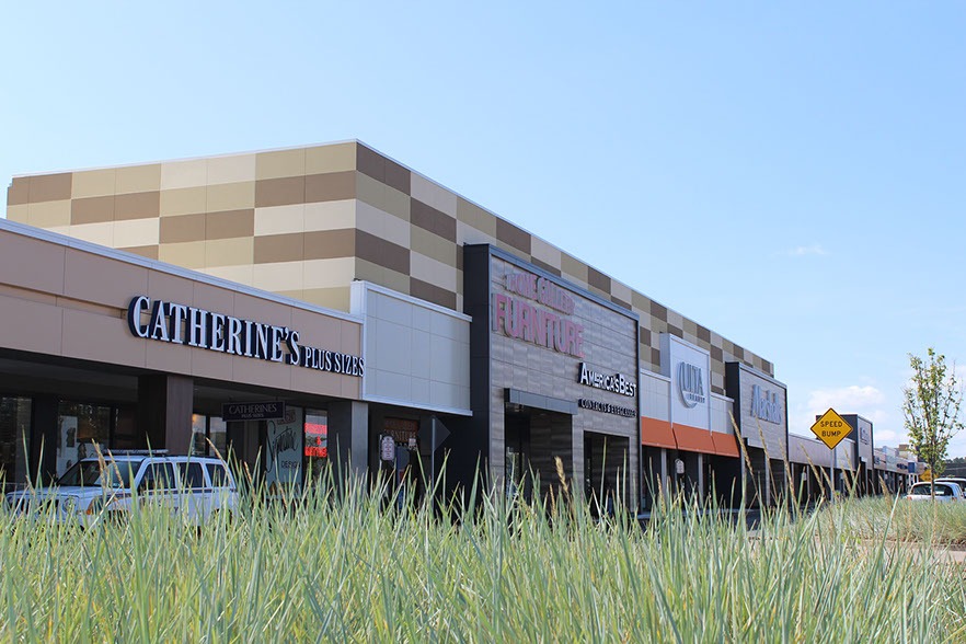 The Hunt Valley Towne Center is a mixed-use project located in Cockeysville, MD. JP2 designed the conversion of the existing vacant anchor building on the west side into a cohesive space featuring Onelife Fitness and Ashley's Furniture. The existing façade of the old Sears was removed to allow for the new tenant facades and addition for the Onelife Vestibule.