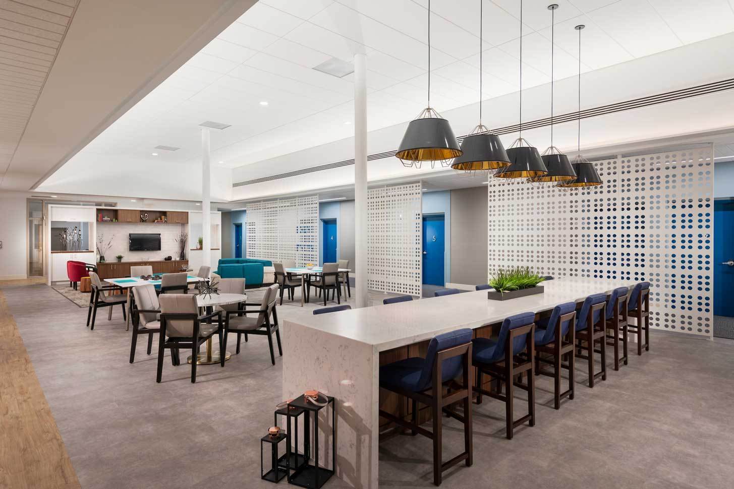 The space was tailored to meet the goals of the organization while providing a warm and engaging space that tells a story of courage, love and respect. The space has different settings that are comfortable and welcoming, characterized by furniture, finishes, materials, interior architecture and lighting. The new experience resonates with guests because every aspect relates to a strong narrative as defined by the brand promise. “Together with love, hope and determination, we transform dreams into reality.”