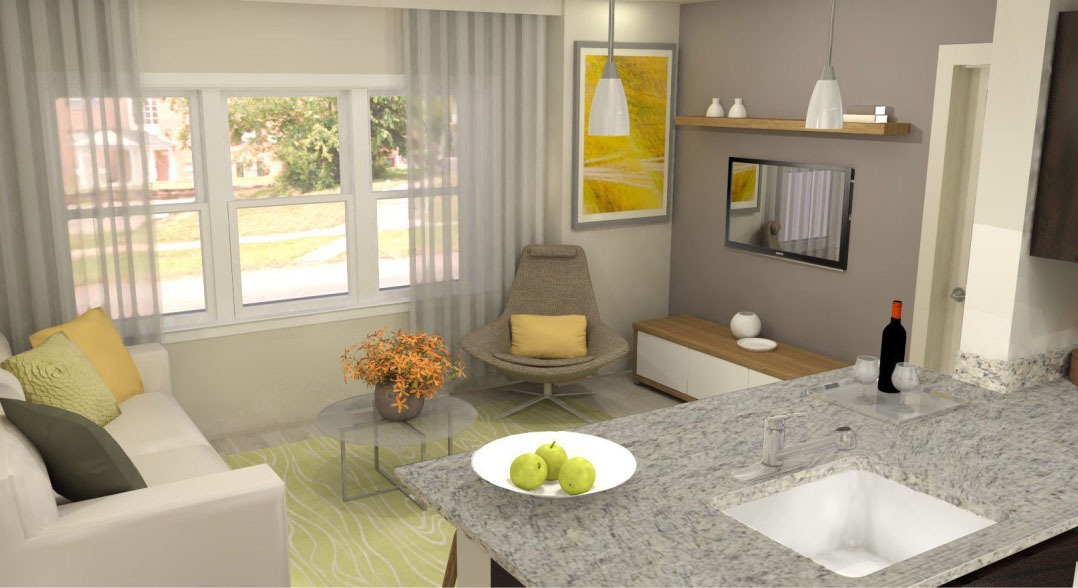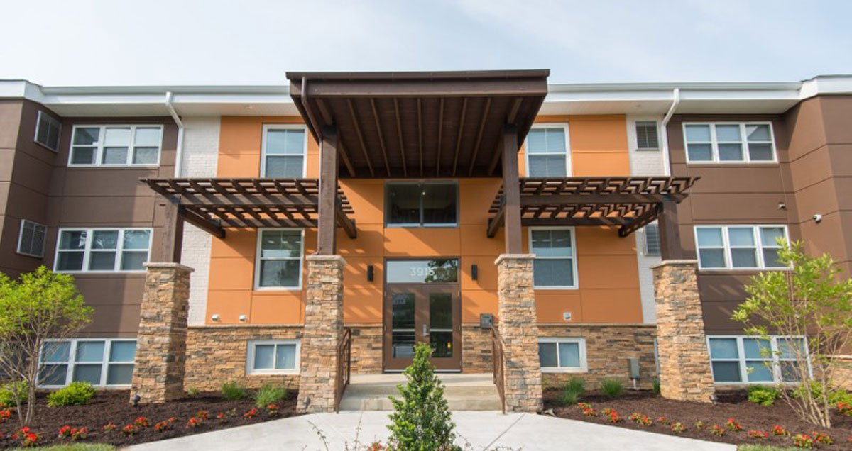 Located in the Central Forest Neighborhood in northeast Baltimore City, The Dorothy J Apartments is the renovation of a 3-story, 44,000 square foot apartment building. Built in 1962, the existing building consisted of 44 residential units but fell victim to a fire in early 2006, leaving only the shell intact. JP2’s design modernizes the unit layouts to include updated open kitchen plans, a second bathroom in 2 bedroom units, and laundry facilities within the units. This is achieved while maintaining a 44 unit count within the existing shell of the building and providing fair housing compliant units on the first level. The exterior design is upgraded to set the building apart from similar surrounding properties while maintaining a construction budget that allows the owner to provide affordable housing to families with limited income.